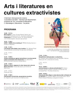 El II seminario «Artes y literaturas en culturas extractivistas» propone un espacio de encuentro e intercambio entre investigadoras e investigadores que trabajan desde la historia del arte, el comisariado, la literatura y la economía, con el objetivo de analizar críticamente las relaciones entre producción cultural y dinámicas extractivas. A partir de un diálogo interdisciplinar, el seminario busca repensar los modos en que las prácticas artísticas y literarias abordan las formas contemporáneas de extracción —de recursos naturales, de territorios, saberes, datos, etc.— y cómo estas prácticas pueden contribuir a la construcción de epistemologías críticas frente a la expansión del capitalismo global.